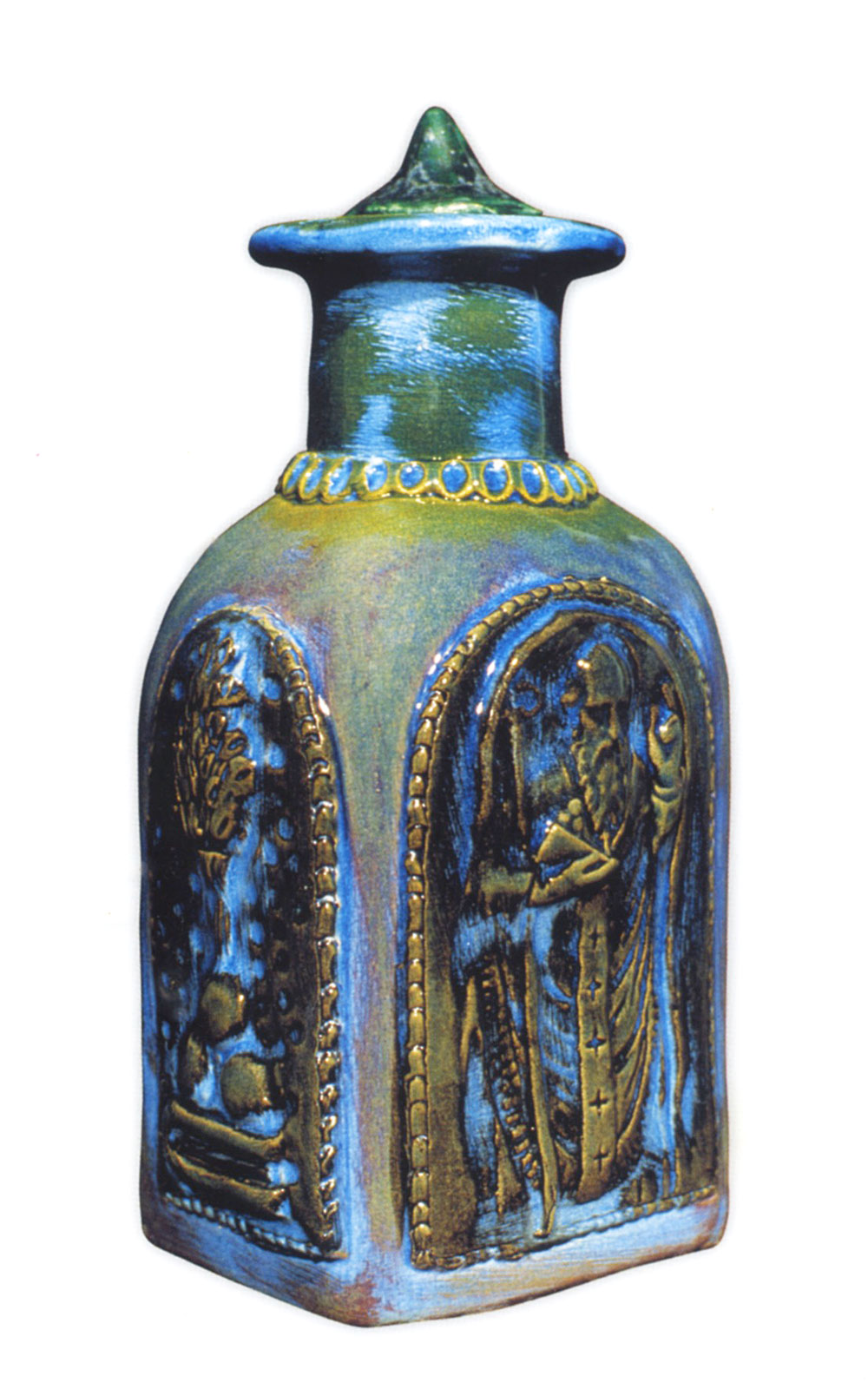 La forma è una delle più tradizionali a base quadrata. Per ogni lato è presente un simbolo nicolaiano: limmagine intera del Santo, i tre sacchi d'oro, la caravella, il pastorale.