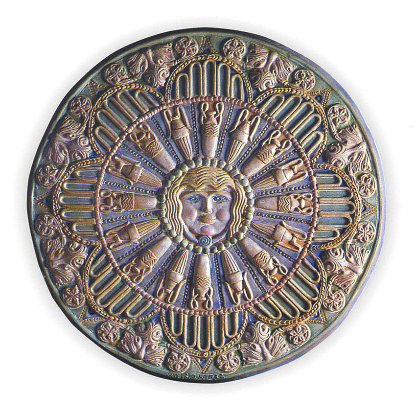 Il rosone è celebrativo del Palazzo dell'Acquedotto pugliese presente nella città di Bari, decorato negli anni tra il 1931 e il 1934 dall'artista romano Duilio Cambellotti. Attraverso l'argilla prendono vita i motivi presenti nei decori architettonici ed in quelli ad affresco, negli intarsi dei mobili e dei pavimenti: l'arco inteso come struttura degli acquedotti ma anche come stilema dello zampillo e l'anfora dalla quale fuoriesce l'onda come flusso d'acqua.